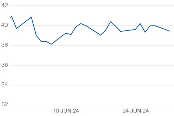 De TTF-gasprijs voor komende winter blijft rond de 40 euro per megawattuur schommelen. Hieronder de prijs voor kwartaal 1, 2025.