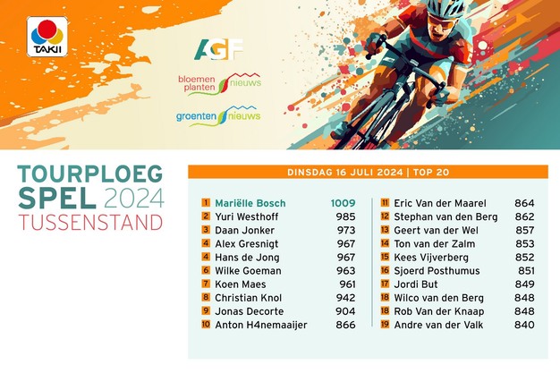 Het was gisteren rustdag in de Tour de France, dus is er door de renners hooguit wat losgefietst. Een dagwinnaar kwam er niet, dus ook niet in het Takii Tourploegspel.