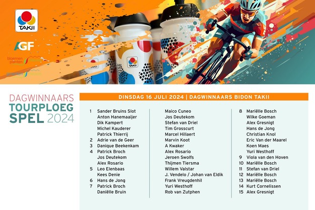 Hieronder zetten we nog even op een rijtje wie er al een dagzege binnenharkten, of zelfs meerdere soms. Dagwinnaars ontvangen van sponsor Takii een Takii-bidon.