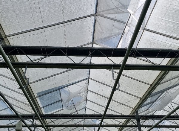 De installatie van het insectengaasfilter is verzorgd door de mensen van SchermNed. Voor de installatie moest het energiedoek in de kas in Wateringen open. Zodra het buitenklimaat het toeliet, konden de installateurs aan de slag. "We hebben alles vanaf de monorail kunnen installeren", geeft Carl aan.