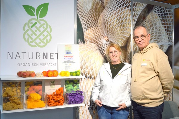 Na het winnen van de Innovation Award op expoSE 2023 was de interesse in de natuurvriendelijke cellulosenetten van NaturNetz GmbH enorm. Deze plasticvrije en composteerbare verpakking werd ook gepresenteerd op de IPM tuinbouwbeurs in Essen en ontving daar eveneens veel positieve reacties, aldus bedrijfsleider Sylvia Segeler. Ze benadrukt dat de netten bijzonder geschikt zijn voor het verticaal verpakken van potplanten, wat kan helpen om te besparen op rekfolie en plastic gaas. Dit sluit goed aan bij de verpakkingsverordening, aangezien de verplichting om omverpakkingen terug te nemen dan niet meer geldt. In de AGF-sector richt het bedrijf zich momenteel voornamelijk op boerderijwinkels en kleine klanten, aangezien de productie van gekleurde netten nog beperkt is.