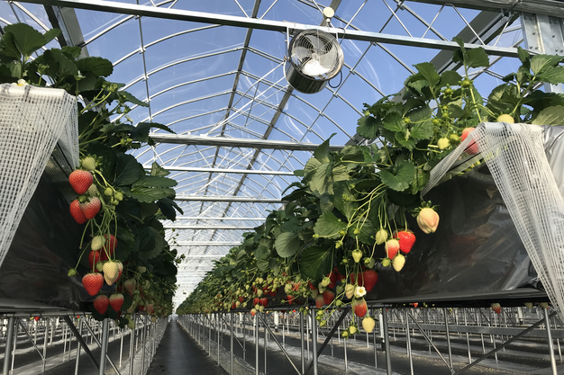 Blik in de kas bij een Japanse teler van aardbeien