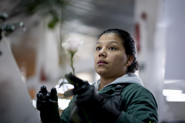 Rozen worden klaargemaakt voor export bij Alexandra Farms. Foto credits: Juan Felipe Rubio @ irrepetible.co