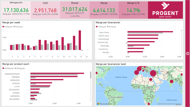 De afgelopen jaren wisten tientallen AGF-handelsbedrijven Progent dan ook te vinden. "Deze maand gaan er weer vier bedrijven live", vertelt William trots. "Bedrijven zijn laaiend enthousiast, omdat ze door middel van het dashboard elke dag actuele cijfers hebben voor de in- en verkoop, maar ook grip krijgen op de debiteuren en crediteuren. Zaken als inkoopmarges, openstaande bedragen per land en klant, maar ook kwaliteitsrapporten en claimrapportages worden in één oogopslag inzichtelijk. En we zijn er nog niet, want in december lanceren we een nieuwe tool waarin Data Science, Machine Learning en AI samenkomen!"