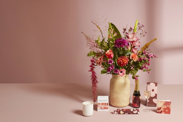 Naast het Original boeket en de limited edition vaas bestaat de collectie uit extra cadeaus als luxe bonbons en feestelijke champagne, die je makkelijk kunt toevoegen aan je boeket. Ook werkt bloomon weer samen met Marie-Stella-Maris: de geurkaars 'No.12 Objets d'Amsterdam' is voor even aan de collectie toegevoegd - een referentie naar de stad waar het ooit begon. Alle cadeaus binnen de limited edition Original collectie zijn verpakt in de feestelijke 'decade-of-bloomon' bloemenprint.