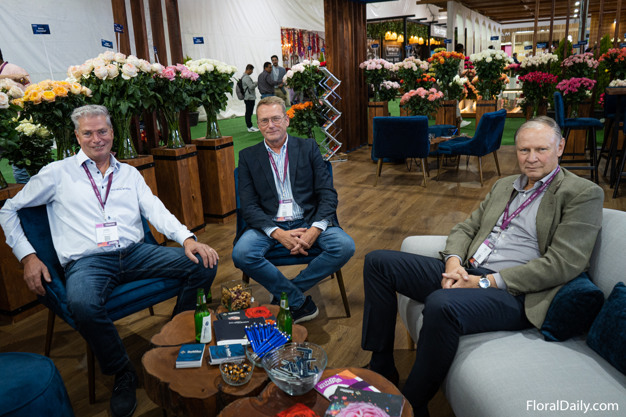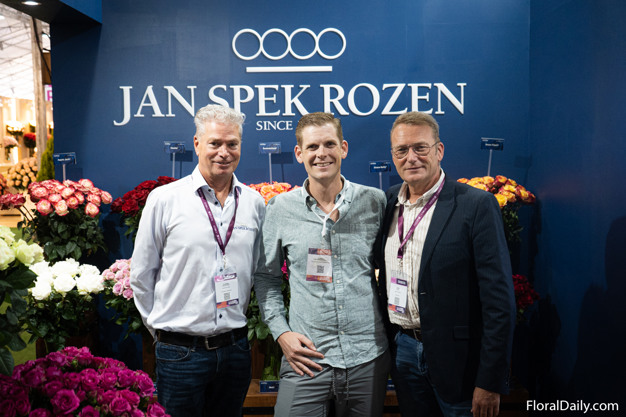 Sjenn Kragtwijk en Erik Spek van Jan Spek Rozen en Oscar Peeters van de Ruijter Innovations. De Ruijter is een agent voor Jan Spek Rozen in Ecuador.