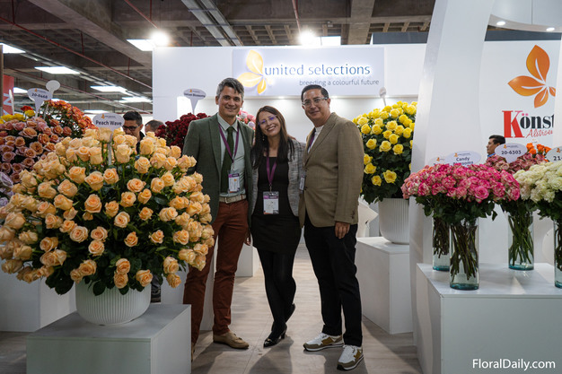 Nog een keer Sjenn Kragtwijk en Erik Spek, hier op de foto met Lars van Weerdenburg die werkt voor Holland Flower Market in Los Angeles.