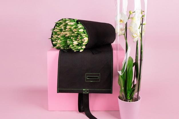 Flower Eco Sheet. Een milieuvriendelijk alternatief voor traditionele papieren tulpenhoezen, dat het papierafval aanzienlijk vermindert.