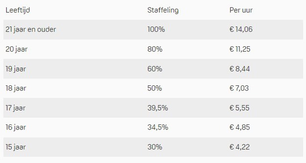 Sinds 1 januari 2024 is er sprake van een wettelijk minimum uurloon. Dit houdt in dat er sindsdien sprake is van een vast minimum (jeugd)uurloon. Het wettelijk minimum(jeugd)loon per 1 januari 2025 is: