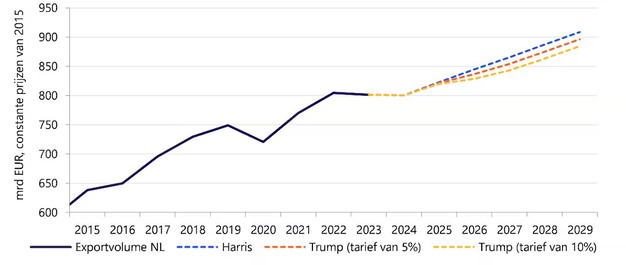 Figuur 8: Exportvolumes krijgen een tik in Trump-scenario's