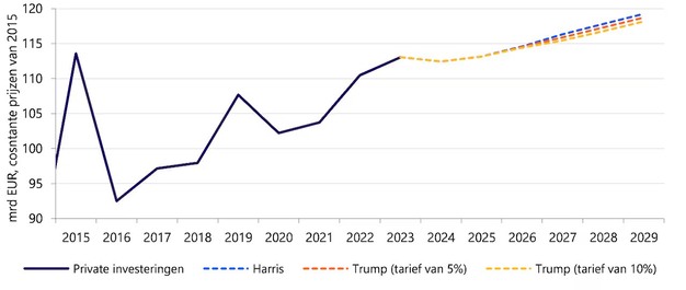 Figuur 7: Private investeringen blijven achter in Trump-scenario's