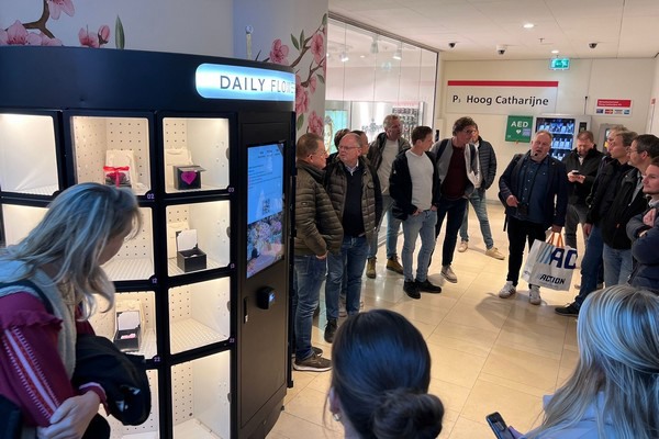 "De tour begon met ontvangst en presentatie door Letty Pennings bij de vestiging van bloemistenketen Bloem! op Utrecht Centraal," vertelt hij. "Dit is een 'high traffic' retail locatie waar iedereen haast heeft en dus weinig tijd om een mooi boeket te scoren. Met een aantrekkelijk gepresenteerde collectie boeketten en duidelijke vaste prijspunten maakt Bloem! het kiezen makkelijk voor de klant. Met een zelfscankassa of tikkiebetaling via een QR-code op het schap, sluit Bloem! helemaal aan bij de behoefte van de convenienceconsument. Efficiëntie is zeker een van de pijlers waarop fysieke winkels zich kunnen onderscheiden. In Hoog Catharijne heb je een verkoopautomaat van Daily Flowers waar gemak weer een hele andere betekenis krijgt. Aan de andere kant vraagt deze verkoopvorm nog wel de nodige aandacht als het gaat om verleiden van klanten."