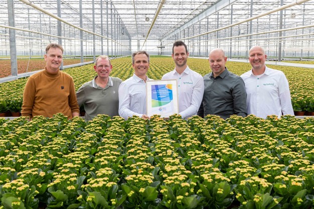Samen met Dutch Plant Group collega's Henk-Jan van den Eijkel (OZ Planten), Ruud de Ruiter (Hamiplant BV) en Eric Mooren (Waterdrinker Aalsmeer B.V.) feliciteerde DFG Leo de Vries, Pim van der Knaap en Pieter Eijgenraam van KP Holland met deze mooie nominatie.
