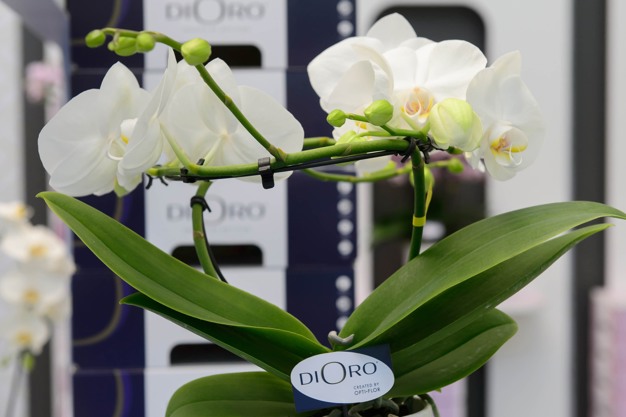 "De nieuwste aanwinst in de Creative Collection, DIORO, belichaamt de onmiskenbare expertise en toewijding van Opti-flor aan het produceren van orchideeën van de hoogste kwaliteit. Met haar grote witte bloemen en haar prachtige vorm die lijkt te zweven, doet DIORO volledig recht aan de pay-off van de Creative Collection; focus on form," aldus Opti-flor. Vanaf maandag 4 november zal DIORO haar weg vinden naar haar klanten.