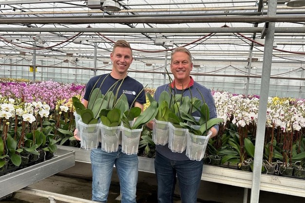 Rob Vollebregt (Manager Orchideeproductie) en Arie van Vugt (President en eigenaar van Plainview)