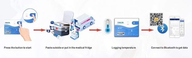 Liao Xiao van Tzone introduceerde de logger: "BT07 is een product dat we onlangs hebben gelanceerd. Deze logger met laag stroomverbruik maakt gebruik van Bluetooth 5.0-technologie om regelmatig de omgevingstemperatuur te meten en de gegevens op te slaan. Hij is dun, licht van gewicht, gemakkelijk mee te nemen en op te hangen, en zeer nauwkeurig. De BT07 wordt veel gebruikt in koel- en transportruimtes voor temperatuurbewaking."