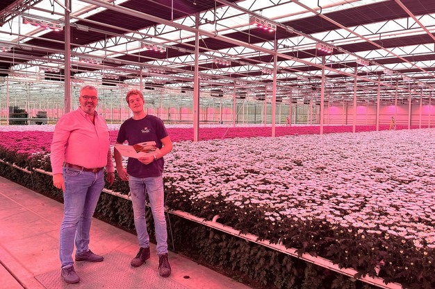 Johan van Erven met Niels van Wijk van Chrysantenkwekerij Van Wijk Gildeland / Vannova