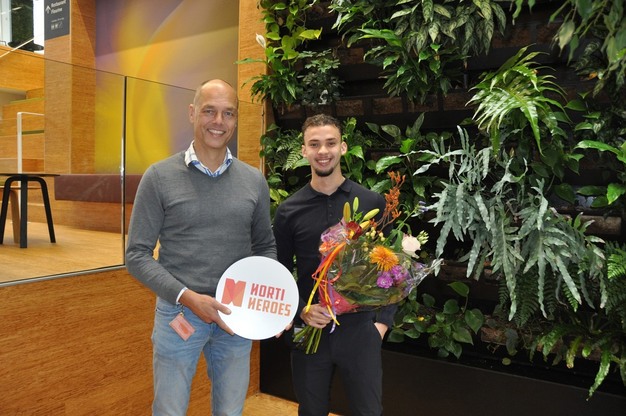 Leendert-Jan Plaisier (COO Royal FloraHolland) en Mohamed Ahanssan (student Hogeschool Rotterdam)