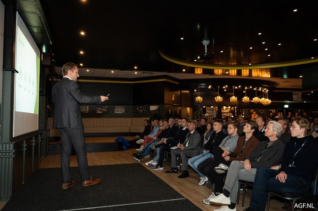Het bruggetje naar de presentatie van Kilian maken we zelf nog even. In de AGF-keten is onder druk van digitalisering het fysiek contact steeds minder, maar blijft vertrouwen belangrijk. Aan de persoonlijke banden, of het nu onderling of met het team van AGF was, kon tijdens de borrel en het buffet mooi gewerkt worden. Aanvallen maar.