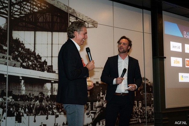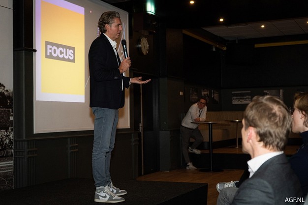 De AGF-handel vierde dinsdag in het stadion ook een feestje, de AGF-Kennis(sen)dag. Er was een rondleiding door het stadion en er was bier en een buffet. Maar voordat het tijd was om daarop aan te vallen, hielden Kilian De Geyter van Fresh Retail Consulting en Pieter van den Hoogenband presentaties.