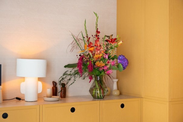 Knalroze, vurig rood, magenta, zonnetjesgeel en warm oranje in combinatie met aardetinten. Voel je de warmte van Spanje en Mexico al? "Bij deze trend draait het om een levendig palet aan kleur. De boeketten zijn opvallend en feestelijk, met volle bloemen die meteen de aandacht trekken", vertelt Poul. Of het nu gaat om een weelderig boeket of een enkele statement steel, bij deze trend zien we bloemen als zonnekruid (bloemen die je vaak in de tuin vindt, zijn een grote trend dit voorjaar), de pioenroos, de (oranje) lelie en de zonnebloem.