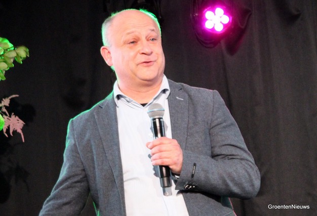 Wim was niet de enige ondernemer die het podium op mocht. Via het videoscherm maakten de aanwezigen ook kennis met Willem van Antwerpen, COO van Growers United, die de verwachting uitsprak dat er in de grote verpakkingshal van de coöperatie minder mensen komen te werken in de toekomst, en ook een ander type mensen. Minder 'handjes' bij het inpakken, omdat er robots en cobots zijn, en bijvoorbeeld meer mensen voor de technische dienst om alle systemen draaiende te houden.