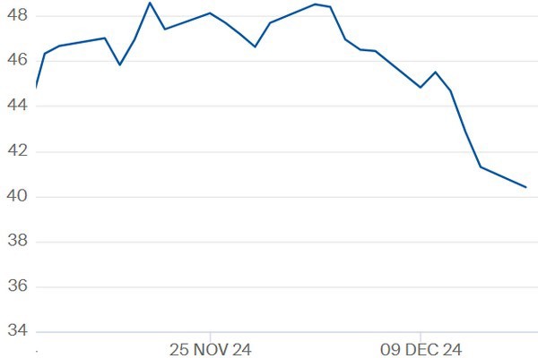 De harde daling van de gasprijs is maandag is afgeremd, maar de TTF-gasprijs voor het eerste kwartaal van 2025 kwam wel weer een stukje lager uit. Inmiddels is de gasprijs hier gezakt tot 40,4 euro per megawattuur.