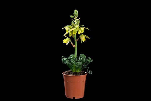 "De volgende is de Albuca spiralis 'Frizzle Sizzle'. "Het blijft een van onze best verkopende start materialen dankzij de unieke krullen en witte, naar vanille geurende bloemen. Deze plant past vooral in programma's die gericht zijn op succulenten, indoor en webshops. We verzenden deze bollen wereldwijd."