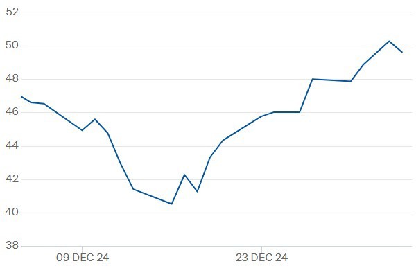 De nieuwe week begint met een iets lagere TTF-gasprijs. Na de piek tot boven de 50 euro per megawattuur ligt de prijs nu weer net onder de 50 euro.