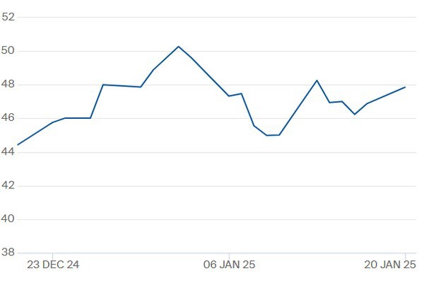 Nog even volhouden. Het mistige weer is bijna voorbij. Of het daarna zonnig wordt, is nog wel de vraag. Voorlopig wijzen de weerberichten op wisselvallig weer. De TTF-gasprijs is aan het begin van de nieuwe week weer aan het stijgen, tot weer boven de 48 euro per megawattuur.