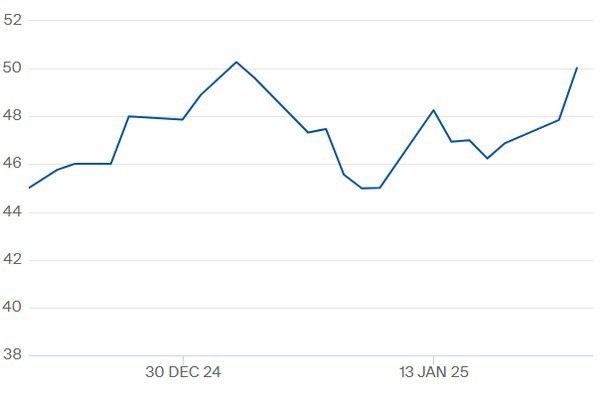 De TTF-gasprijs is op de laatste mistige dag weer tot boven de 50 euro per megawattuur gestegen. Ook woensdagochtend schuurt de contractprijs voor februari, het dichtstbijzijnde maandcontract, tegen de 50-eurogrens aan.