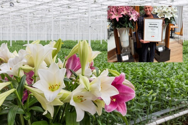 De mooiste inzending tijdens de CNB Bloem- en relatiedagen 2025 is uitgereikt aan Dhr. Jan Paauw van Dutch Lily Masters. Deze prijs voor de 'Mooiste Inzending' was voor de vazen met lelies.