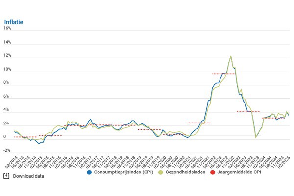 Nederlandse inflatie in februari 3,8 procent bij snelle raming