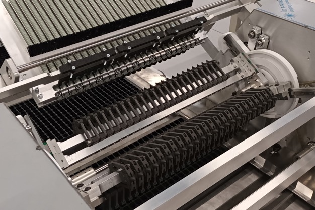 Wat onderscheidt de Advanced Series van de rest? Maan's 'pick & place'-mechanisme zorgt ervoor dat de Growcoon uiterst gecontroleerd in de tray wordt gepositioneerd, tegenover het drop-mechanisme waarover de basislijn beschikt. Dit verhoogt niet alleen de nauwkeurigheid, maar maakt de dispenser ook compatibel met een breder scala aan Growcoon/traycombinaties. De volautomatische variant kan meer dan 55.000 Growcoons per uur verwerken, afhankelijk van het traytype en de configuratie.