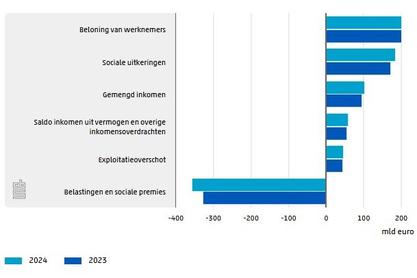 Het inkomen van zowel werknemers als zelfstandigen lag in 2024 hoger dan in 2023. De totale beloning van werknemers groeide met 7,3 procent. Het aantal banen van werknemers groeide met 0,7 procent, terwijl de cao-lonen 6,6 procent hoger waren. Het gemengd inkomen lag 6,7 procent hoger. Vooral in de gezondheidszorg, de detailhandel en de horeca nam het inkomen van zelfstandigen toe.