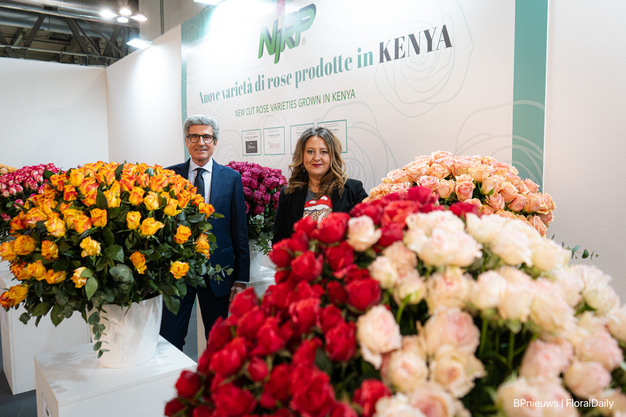 Als je vorige maand Myplant & Garden bezocht of onze fotoreportage bekeek, kon je de grote display met Ecuadoriaanse en Keniaanse snijrozen niet gemist hebben. Deze presentatie toonde rozensoorten van NIRP en was georganiseerd door de veredelaar in samenwerking met de organisatoren van het evenement: Valeria Randazzo, Manager, en Filippo Faccioli, Coördinator. Volgens hen "was dit de eerste keer dat er zoveel rozen uit deze landen op deze beurs werden getoond, namelijk meer dan 3.000 stelen en 23 verschillende variëteiten."