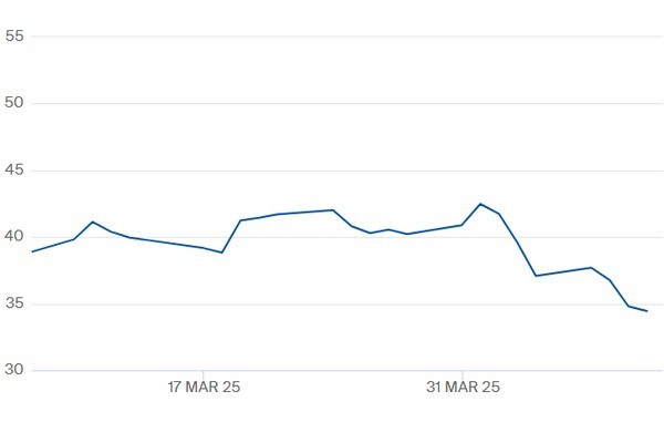 De TTF-gasprijs voor het contract 'winter 2025' t/m 10 april. Klik hier voor de actuele gascontractprijzen.