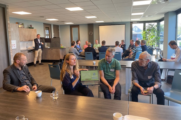 Na het plenaire gedeelte gaat de groep van circa dertig telers en andere geïnteresseerden met Jildou, Peter en engineer Wouter Bentvelsen om tafel voor meer details. Telers willen weten hoe het werkt met opladen in de winter. Ook dan zijn er dagen dat er genoeg zon is om het systeem op te laden, zo blijkt uit data uit de kas bij Koppert Cress, en daarnaast houdt de warmtebatterij de warmte beter vast.