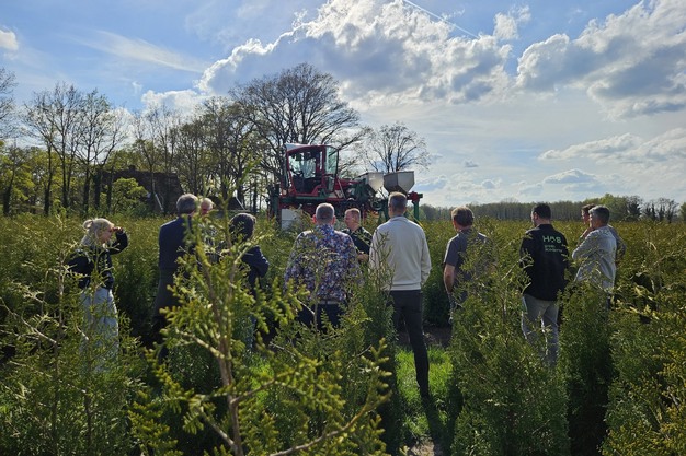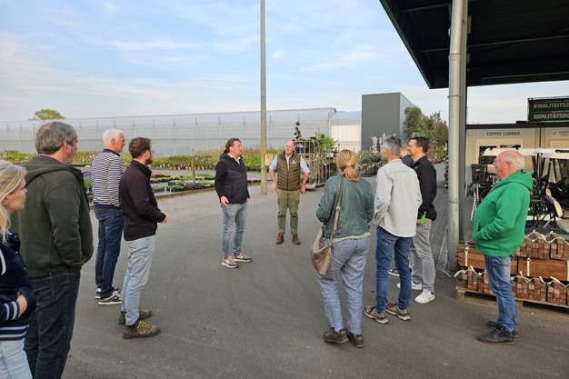 Na een gezamenlijk diner en netwerkmoment bij de hoofdlocatie in Hengelo, nam Dirk Boomkamp – eigenaar van Boomkamp Groenbedrijven – de deelnemers mee in de commerciële wereld achter de teelt. Vanuit zijn ervaring met onder meer Twenthe Plant en Boomkamp Boomkwekerijen liet hij zien hoe verschillende verkoopsystemen worden ingezet voor uiteenlopende doelgroepen, van hoveniers tot groothandels in heel Europa.