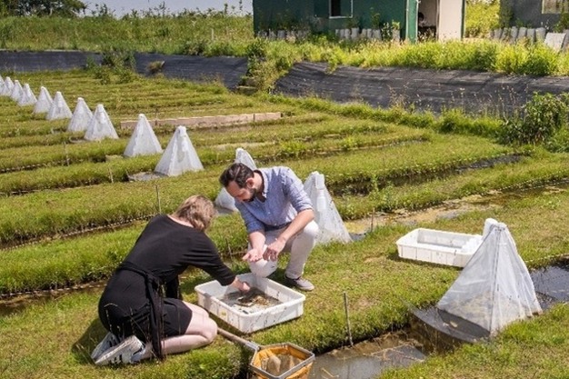 Hierna maten ze zoveel mogelijk in de ecosystemen van de sloten. Barmentlo: 'We maten de diversiteit aan ongewervelden, planten, fytoplankton, drijvende algenbedden, afbraak en consumptie van ongewervelden en verschillende andere parameters die de waterkwaliteit aanduiden.'
