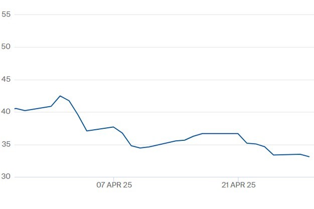De TTF-gasprijs voor het contract 'winter 2025' t/m 29 april. Klik hier voor de actuele gascontractprijzen.
