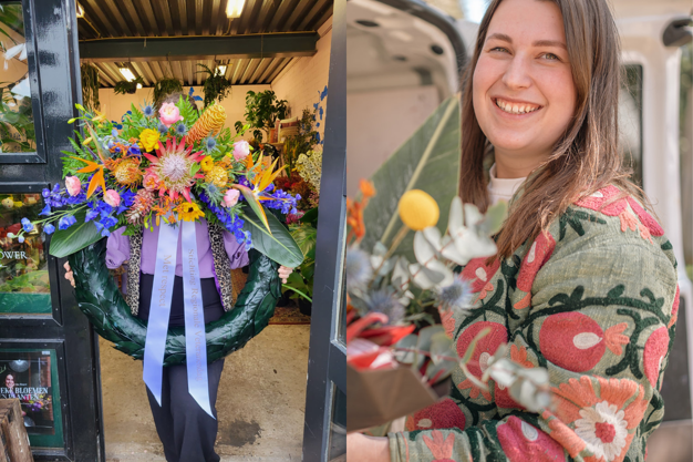 Miriam is 23 en werkt al sinds haar 13e met bloemen. Op haar 15e begon ze in een bloemenzaak en op haar 18e schreef ze zich in bij de KvK. Inmiddels runt ze vier jaar haar eigen bedrijf 'Art of the Flower', met een bloemenwinkel in Putten en daarnaast grote opdrachten zoals bruiloften en rouwstukken. "Dit jaar doe ik zo'n veertig bruiloften, maar ik vind opdrachten zoals deze ook erg waardevol."