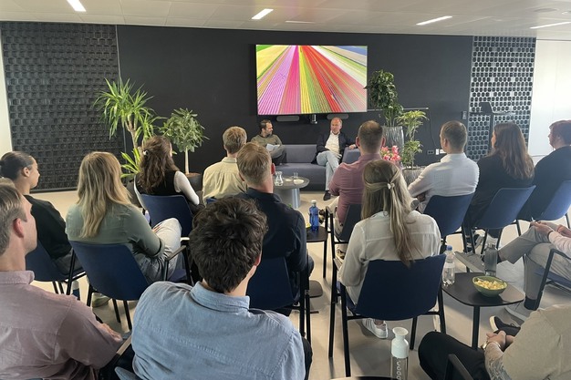 "Binnen onze eigen organisatie is Young Flora actief, een netwerk van jonge professionals dat zich inzet vanuit verbinding en ontwikkeling. Vorige week was ik te gast bij hun college tour. Tijdens een open en inspirerend gesprek kreeg ik vragen over mijn loopbaan, privéleven en visie op de toekomst. Ook werd er gesproken over de mogelijkheden voor de jonge generatie binnen Royal FloraHolland, waaronder stages en traineeships."