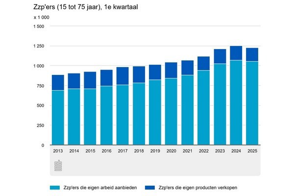 Het aantal zzp'ers van 15 tot 75 jaar is in het eerste kwartaal van 2025 gedaald met 28 duizend ten opzichte van hetzelfde kwartaal in 2024. Het is jaar op jaar de eerste daling sinds de start van de reeks in 2013. Er waren vooral minder zzp'ers die eigen arbeid aanbieden. Het aantal stoppers nam het meest toe onder zzp'ers met een technisch beroep. Dat blijft uit nieuwe cijfers van het CBS.