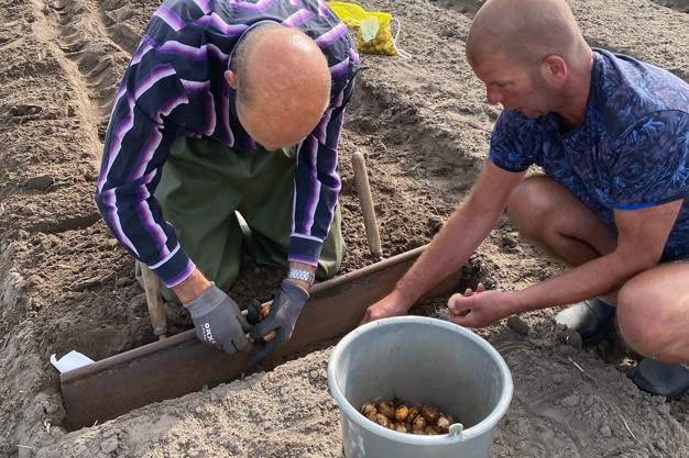 Afgelopen week zijn bij De Tulperij in Voorhout de eerste gladiolen geplant voor de proeftuin van Vigo Gladiolus.