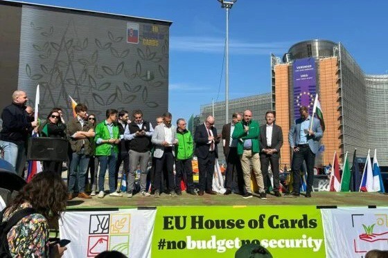 Met een visuele actie wilden ook Boerenbond en Groene Kring tonen dat voedselzekerheid een fundamentele pijler van veiligheid is en dat het Gemeenschappelijk Landbouwbeleid versterkt moet worden in het EU-budget. De actievoerders in Brussel hadden een levensgroot kaartenhuis opgebouwd als onderdeel van de actie.