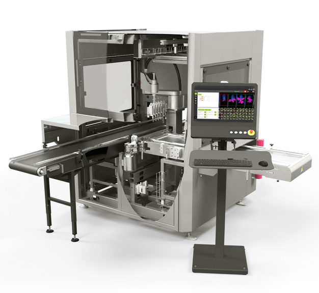 - Een bovenop gemonteerd vision-systeem scant op lege cellen
