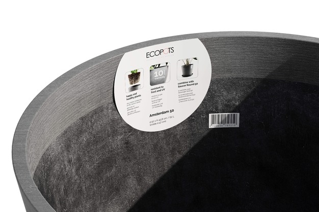 In lijn met het vernieuwde concept van de 'silent salesman' ontwikkelde Ecopots een nieuwe labeling. Elke pot bevat voortaan aan de binnenkant een korte, duidelijke omschrijving die de USP's toelicht en het verhaal van duurzaamheid en design uitdraagt. Een QR-code biedt toegang tot oppotinstructies en verzorgingstips online. De vernieuwde 'bow ties' blijven bovendien netjes in vorm en krullen niet langer op, wat zorgt voor een verzorgde en professionele presentatie op het winkelpunt.