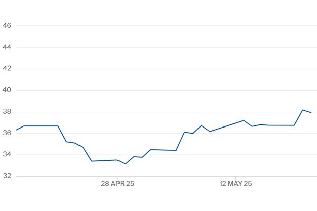 De TTF-gasprijs voor het contract 'winter 2025' t/m 21 mei. Klik hier voor de actuele gascontractprijzen.