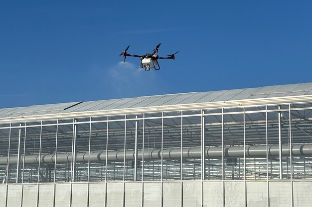 Het Britse bedrijf Bridge Greenhouses, specialist in het bouwen en uitrusten van commerciële kassen, biedt nu een droneservice aan om het dek van kassen en folietunnels te reinigen of te coaten.